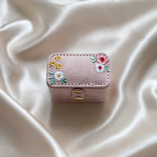 Embroidered Flowers Petite Velvet Travel Ring Box