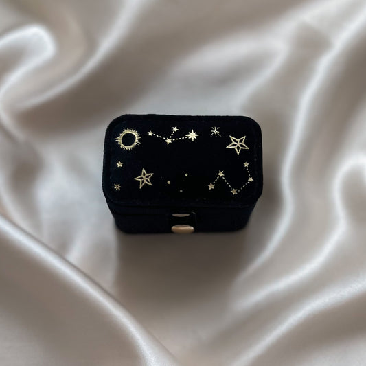 Starry Night Velvet Petite Travel Ring Case in Black