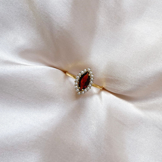 Garnet and Pearl Marquise Ring