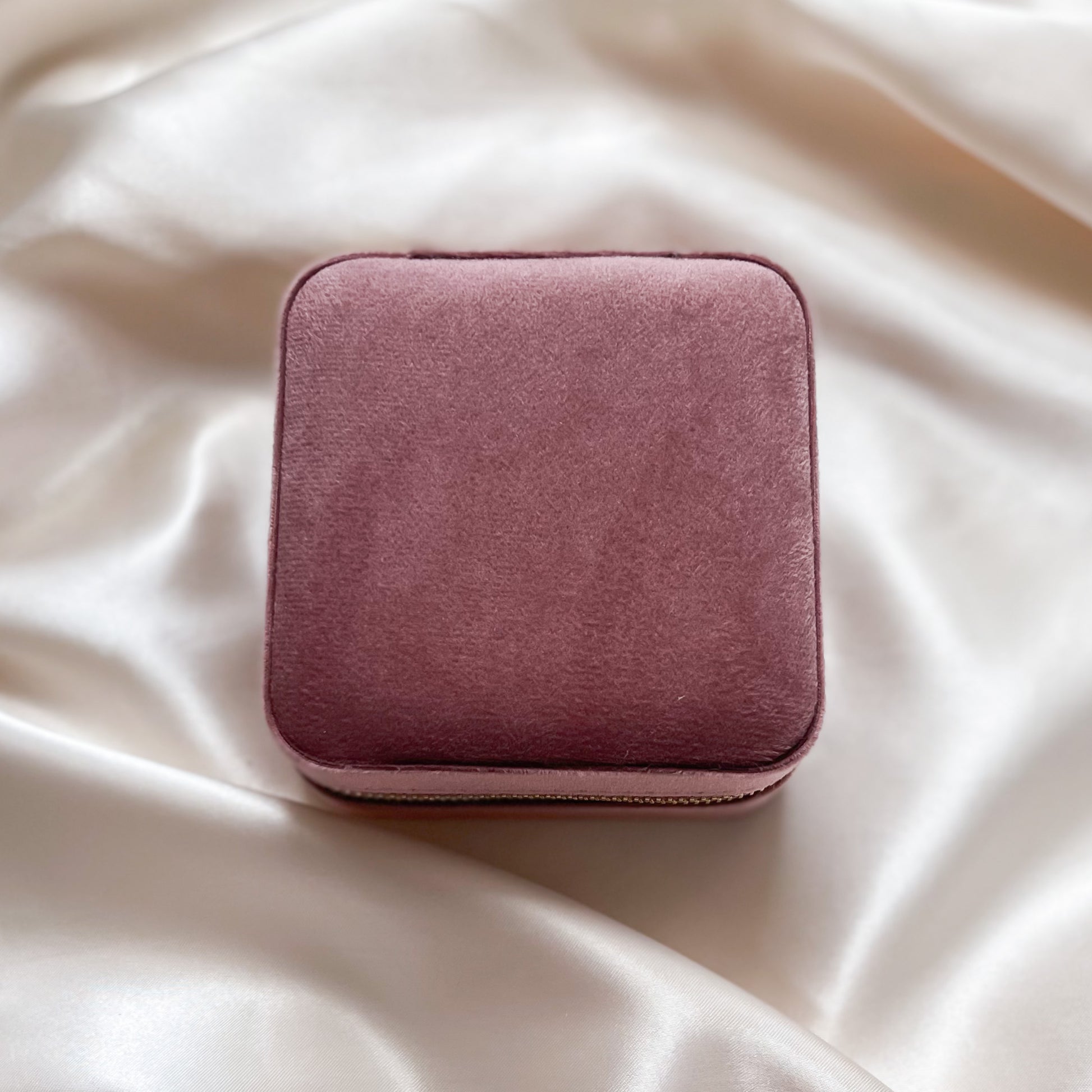 Rose Pink Velvet Square Travel Jewellery Case