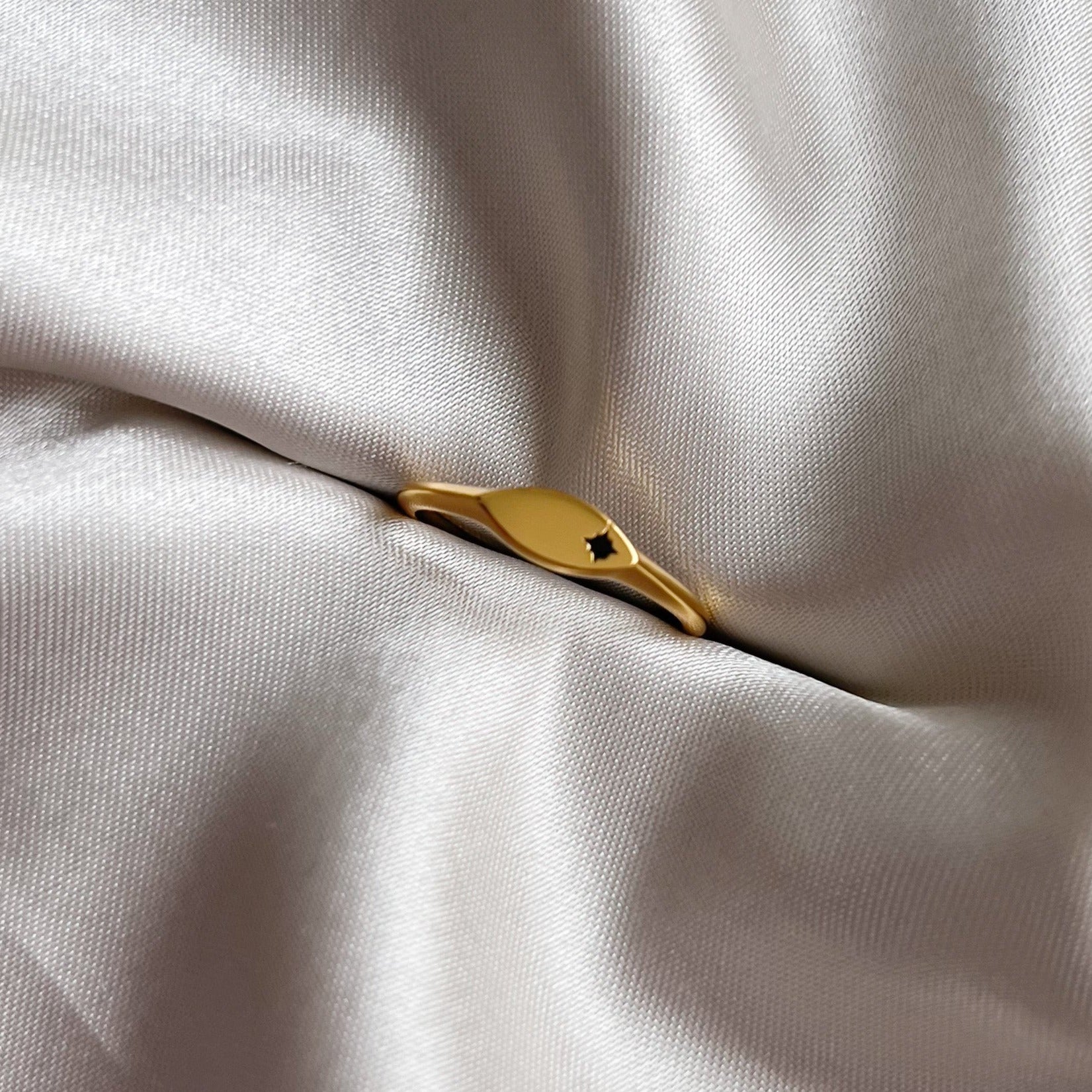 Our 18K Gold Vermeil Star Slim Signet Ring is the perfect alone or to add to an existing ring stack.